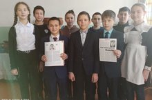 Обучающиеся 6 класса участвовали на уроке Мужества. Яруллина К.Л. через фильм и рассказ ознакомила их с настоящим героем, земляком Михаилом Девятаевым.