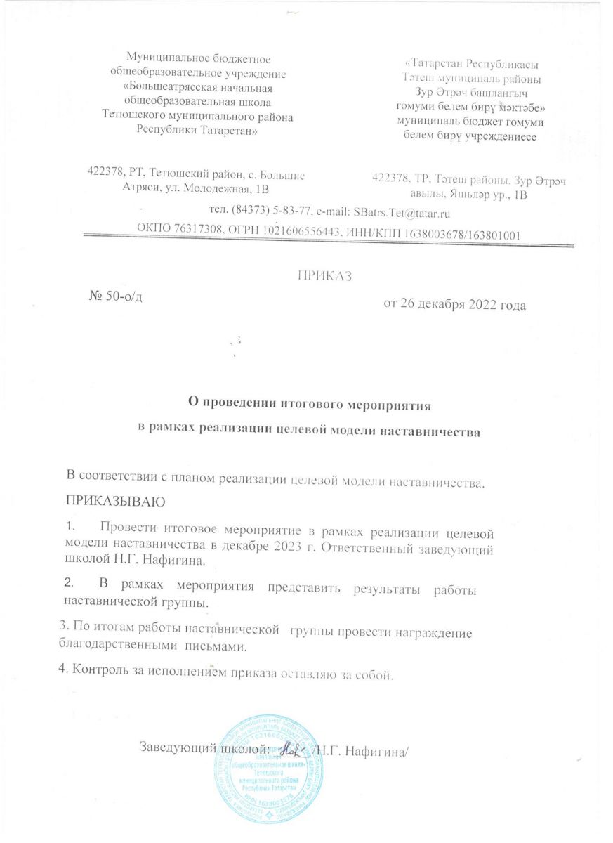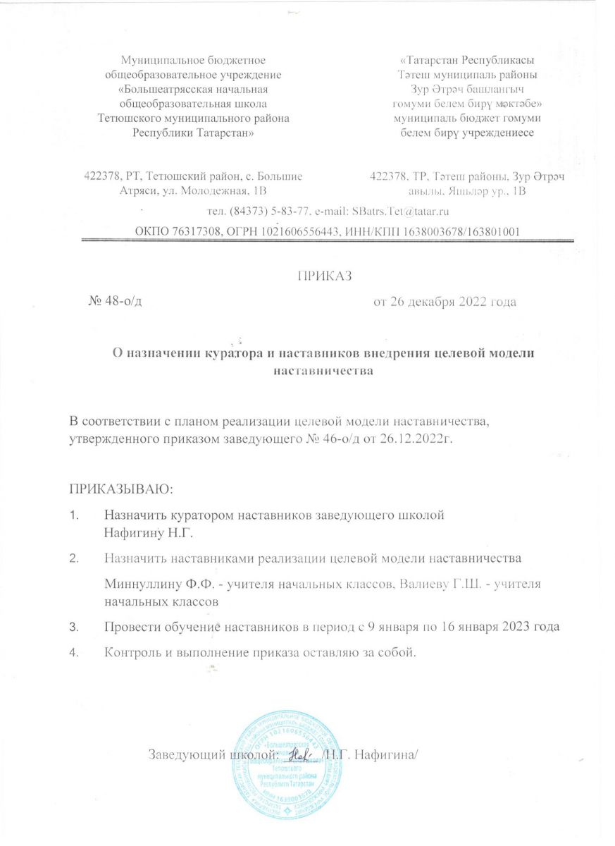 План основных мероприятий по проведению Года педагога и наставника в МБОУ «Большеатряссская НОШ»