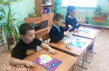 В рамках Декады Гагарина обучающиеся школы-детский сад выполнили аппликацию "В космические дали..."