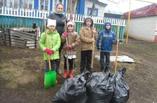 Обучающиеся 1-3 классов помогли в уборке территории около дома труженику тыла Александрову А.Т.