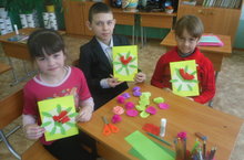 А мы изготовили для своих мам вот такие поздравительные открытки.
