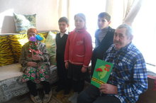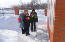 В рамках месячника оборонно-массовой и патриотической работы, посвященного 70-летию Победы в ВО войне учащиеся 1,4 классов (кл.руководитель Альденейкина С.П.) навестили семейную пару Александровых Аркадия Тимофеевича и Аврору Федотовну, ветеранов-труженников тыла, поздравили их с прошедшими днями рождения. А Аркадия Тимофеевича поздравили с наступающим праздником- Днем защитника Отечества, вручили им подарки, изготовленные своими руками.