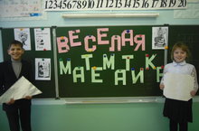 Для учащиеся 4-го класса провели праздник, посвященный Математике-царице всех наук. Никита с Кристиной с удовольствием отгадывали математические загадки,ребусы, кроссворд, решали шуточные задачи, показали сценку в стихах " Треугольник и квадрат ".
