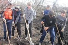 28 апреля в рамках Всероссийской добровольческой акции «Весенняя неделя добра» тимуровцы 7-8 классов нашей школы оказали помощь ветерану Великой Отечественной войны Малышкину Н.Б., вскопали огород.
