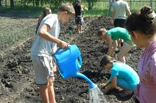 Сегодня учащиеся пришкольного лагеря труда и отдыха "Романтики" убирались в саду...