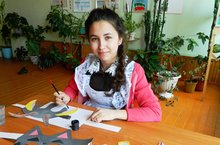 Обучающаяся 10 класса МБОУ "Большетарханская СОШ" Садыкова Лилия готовит маски для инсценировки сказок Габдуллы Тукая. 15.04.2016