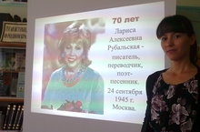 В Большетарханской школьной библиотеке для 11 классов прошел библиотечный урок, посвященный 70-летию писателя, переводчика, поэта-песенника наших дней Ларисы Рубальской. 26.09.2015