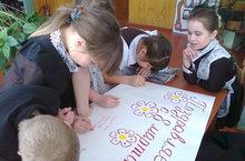 В Большетарханской школьной библиотеке для начальных классов прошло мероприятие, посвященное 8 марта. Дети с удовольствием слушали стихи и пословицы о маме и в конце нарисовали красочный плакат с пожеланиями для своих мам, бабушек, учителей, сестер.