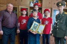 Ватанны саклаучылар көне алдыннан юнармиячеләр ОБЖ укытучысы Бускин Р. Я. җитәкчелегендә Россия Федерациясе Кораллы Көчләрендә хезмәт итүче чыгарылыш сыйныф укучыларының ата-аналарында булдылар. Хәрби хезмәткәрләрнең әти-әниләренә уллары өчен рәхмәт сүзләре һәм мәктәп укучылары һәм укытучылар исеменнән истәлекле открыткалар тапшырылды