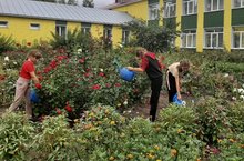 В рамках общероссийской добровольческой акции «Осенняя неделя добра» обучающиеся 7 класса продолжают ухаживать за цветами в школьном дворе «#Субботник 06.09.2021
