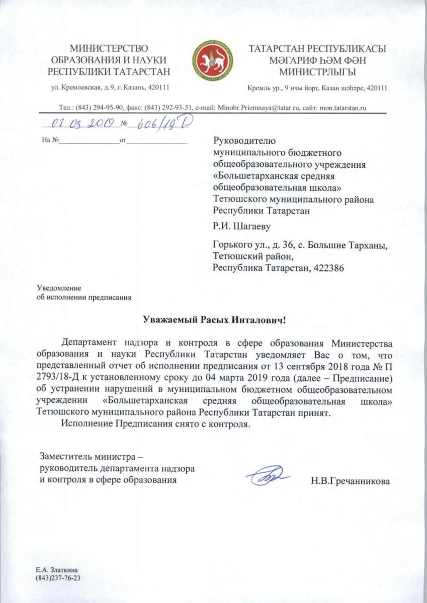 Муниципальное бюджетное общеобразовательное учреждение «Большетарханская средняя общеобразовательная школа» Тетюшского муниципального района РТ\ Татарстан Республикасы Тәтеш муниципаль районы "Олы Тархан урта гомуми белем бирү мәктәбе" муниципаль бюджет гомуми белем бирү учреждениесе