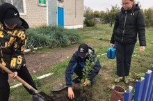 В рамках акции «Зелёный субботник» в память погибших защитников Родины, на территории школы посажены деревья.