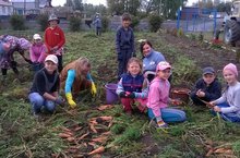 На пришкольном участке школы идет уборка овощных культур - картофеля, моркови, столовой свеклы.