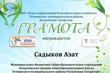 Муниципальное бюджетное общеобразовательное учреждение «Бакрчинская средняя общеобразовательная школа» Тетюшского муниципального района РТ/ Татарстан Республикасы Тәтеш муниципаль районы "Бакырчы урта гомуми белем бирү мәктәбе" муниципаль бюджет гомуми белем бирү учреждениесе