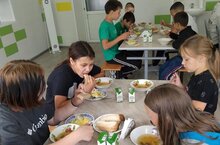 16 июня в пришкольном лагере «Солнышко» ребят ждал "День хороших манер". Утро началось, традиционно, с бодрящей весёлой зарядки. Дети с удовольствием повторяли танцевальные движения. После вкусного завтрака воспитатели провели с ребятами увлекательную беседу о правилах этикета. Были просмотрены полезные мультфильмы-уроки тётушки Совы: «Урок вежливости» и «Уроки хорошего поведения». А затем прошла акция «Подари улыбку другу». Дети выпустили плакаты. Далее провели игру «Найди клад», разыгрывали лотерейные билеты. Время пролетело интересно, ребята разыгрывали сценки, рисовали, соревновались, много шутили и смеялись. Все ребята остались довольны и ушли домой с хорошим настроением.