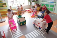 В рамках Всероссийской недели безопасности дорожного движения дети второй младшей группы узнали правила безопасного перехода дороги на перекрёстке. При переходе дороги, будучи водителем самоката или велосипеда, обязательно надо спешиться. На регулируемом пешеходном переходе опираться на сигналы светофора. Ребёнок всегда находится в сопровождении взрослого. Закрепили правила в сюжетно/ролевой игре "Перекрёсток"