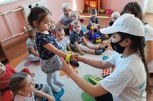 Помогали Колобку катиться по извилистой дорожке, скакали на мяче как Конёк-Горбунок, управляли метлой Бабы Яги, заселяли жителями теремок.