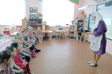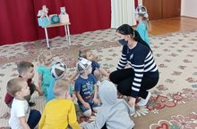 Сегодня к ребятам средней-старшей группы в гости приходила бабушка эби. Она познакомила детей с татарским головным убором тюбетейка и поиграла с ними в игру «Тюбетейка». А после предложила им посмотреть детский спектакль «Тюбетейка», который подготовили и записали дети подготовительной группы.
