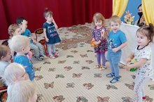 В группе «Малышарики» прошло музыкальное развлечение «Веселые музыканты». К ребяткам приходили зверята: мишка принес ложки, мышка колокольчики, козочка бубны. Они познакомили детей с музыкальными инструментами и их звучанием. Дети с удовольствием поиграли на музыкальных инструментах. Поиграли и в музыкальную игру «Птички и гнездышки» ребята откликались на музыку веселого характера, ритмично двигались по залу, старались не наталкиваться друг на друга.