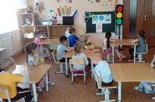 Бүген икенче кечкенәләр төркемендә «нәниләр өчен юл йөрү кагыйдәләре»дигән тематик көн узды. Балалар юл хәрәкәтенең иң төп кагыйдәләрен белделәр һәм кабатладылар, светофорның чәчәкләр әһәмиятен кабатладылар. Урамда «Послушные машиналар һәм җәяүлеләр»уенын уйнадылар. Ә соңыннан балалар «Светофор»ясадылар.