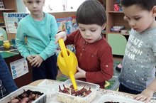 Именно поэтому воспитатели второй младшей группы совместно с ребятами решила создать свой огород. Сначала дети рассматривали разные семена: огурцов, кабачков, гороха, салата, редиски. Было интересно рассмотреть семена цветов и овощей. Затем с большим удовольствием приняли участие в процессе посадки овощных культур, таких, как лук, помидоры и фасоль.