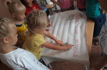 Сегодня 2 августа интересно и познавательно прошло развлечение "Путешествие в зеленую страну" для детей старших групп. К ребятам в гости пришли Королева природы и Тетушка Сова, но они пришли не одни, по пути встретили Иванушку Дурачка, который заблудился и не мог найти дорогу в "Сказочную страну".Он попросил ребят помощь ему вернуться домой. Дети с радостью помогли ему пройти препятствия такие как: "Зеленая туннель", "Волшебные мячи" и т.п.Но для того чтобы попасть в "Сказочную страну " нужно было отгадать головоломки от Красной Шапочки. Дети справились со всеми препятствиями и нашли дорогу в "Сказочную страну ". Ребята пожелали Иванушке чтобы он больше не терялся.