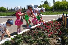 Сегодня в,, День Садоводства,, дети 2 младшей, средней группы выполняли продуктивную деятельность,, Цветочная поляна,,. В ходе предварительной беседы выяснили, что нужно для того, чтобы цветы росли, вспомнили, кто живёт на цветочной поляне, делали пальчиковую гимнастику,, Колокольчики,,. Каждый ребёнок сделал свою особенную цветочную полянку. В ходе прогулки ребятишки обратили внимание на то, что на нашем участке растут красивые цветы, они как и другие растения нуждаются в воде. Ребята с удовольствием поливали, разрыхлили грабельками землю. -