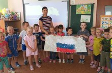 В преддверии празднования Дня России в старшей-подготовительной группе прошло тематическое мероприятие "Наша родина-Россия". Дети ещё раз вспомнили символы нашей страны, посмотрели мультфильм "Мы живём в России", играли в игру "Собери флаг", смастерили коллективный коллаж "Российский триколор". А на прогулке рисунками на асфальте, украсили территорию детского сада. -