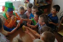Детство и игра - понятия неразделимые. Игра развивает и радует ребёнка, делает его счастливым. В игре дети совершают первые открытия, переживают минуты вдохновения. А кто из детей не любит играть с мыльными пузырями? Пускать пузыри - это очень увлекательный процесс, который дарит много позитивных эмоций. Вот и сегодня в "День любимых игр" воспитанники старшей-подготовительной группы, вместе с клоуном Плюхом решили поиграть и поэкспериментировать. Ребятишки смешивали воду и жидкое мыло, а затем пускали мыльные пузыри, играли в игры: "На что похож мыльный пузырь?", "Чей пузырь больше?", "Надуй самое большое мороженное ","Раздуй самый большой вулкан". Но оказалось, что мыльными пузырями можно не только играть, но и рисовать, если в раствор добавить немного краски. Что мы и сделали. И вот мы уже волшебники, так как у нас получились замечательные рисунки!