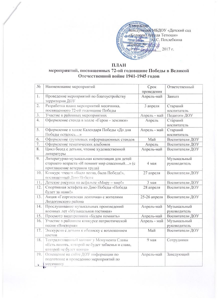 План мероприятий к 70-летию Победы в ВОв. скачать