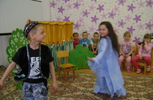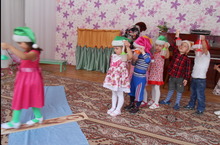 19 марта во второй младшей группе был проведен физкультурный досуг. Дети играли в сказку, в которой происходили разные волшебные превращения. Они превратились в гномиков и отправились в лес на «Волшебную полянку», а в пути их застал дождик, затемгномики пришли к болоту, где жили весёлые лягушки, там дети поиграли в п/и «Лягушки и журавль» и после многих приключений они нашли чудесные цветы, а затем с фонариками вернулись домой.