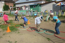 22 июля 2014 года с воспитанниками средней - старшей группы было проведено развлечение "Обруч - веселый помощник и друг". Дети с увлечением выполняли упражнения с обручем, участвовали в подвижных играх, узнали о разновидностях обручей, закрепили правила безопасного поведения при выполнении физических упражнений во время игр.