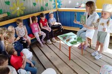 Воспитанники детского сада «Малыш» побывали в детской библиотеке. Ребята приняли участие в экологической викторине – путешествии «Вода, вода, кругом вода». В ходе мероприятия дети отгадывали загадки о воде и различных водоемах, играли в игру «Волга - матушка река», совершили слайд-путешествие от истока великой реки Волги до ее впадения в Каспийское море. Обсудив основные экологические проблемы реки, сделали выводы о том, как нужно бережно относиться к водоемам и к нашей матушке-Волге.