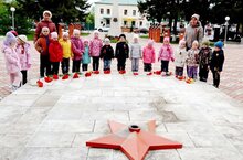 В преддверии празднования 79-й годовщины Великой Победы в детском саду «Малыш» проходят мероприятия в рамках тематической недели «День Победы» с целью расширения знаний у детей о Великой Отечественной войне, о доблести, подвигах и о славе наших воинов - освободителей, о том, какой ценой была завоевана победа. В группах оформлены тематические уголки, организована выставка «Военная техника», изготовлены стенгазеты. Сегодня ребята посетили городской Мемориал Славы и возложили цветы к Вечному огню.
