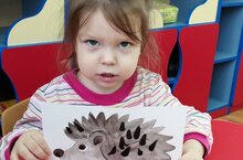 4 февраля – День рождения русского писателя М.Пришвина. Воспитанники младшей группы изобразили главного героя из рассказа «Ёж». Также дети узнали, что ёжик живет в лесу, у него много иголок, с помощью которых он защищается, а зимой маленький зверек спит.