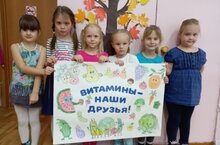 Сегодня с воспитанниками старшей – подготовительной группы детского сада «Малыш» была проведена беседа о пользе витаминов для организма человека. Дети узнали, в каких овощах и фруктах наибольшее количество витаминов, для чего они необходимы. Воспитанники нарисовали свои любимые фрукты и овощи. По итогам мероприятия были оформлены стенгазеты «Витамины – наши друзья», «Витамины всем нужны!»