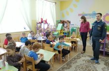 Сегодня в нашем детском саду была проведена встреча с сотрудниками МОНД и ПР по Камско –Устьинскому и Тетюшскому муниципальным районам. Старшие инспекторы Горбунов Р.М. и Сафиуллин Д.Х. рассказали дошколятам о том, как себя вести при пожаре самим и как оказать помощь другим людям, самое главное - не паниковать, а действовать быстро и грамотно. Дети вместе с сотрудниками МЧС вспомнили и закрепили причины возникновения пожара. Ребята еще раз сделали вывод, что огонь бывает смертельно опасным, если люди забывают об осторожности. Пожар не случайность, а результат неправильного поведения людей.