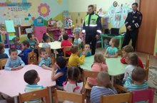 В нашем детском саду состоялась встреча с сотрудниками ГИБДД, которые провели профилактическую беседу о правилах дорожного движения. Цель беседы – профилактика детского дорожно - транспортного травматизма. Старший государственный инспектор Мостяков Д.А. рассказал воспитанникам о том, как правильно вести себя на проезжей части, напомнил детям о светоотражающих элементах – фликерах. Вместе с инспектором по пропаганде БДД Волковым С.В. дети вспомнили основные правила безопасного поведения на дороге. В игровой форме «красный, желтый, зеленый» рассказали, как следует переходить дорогу и как должен вести себя пешеход на пешеходном переходе. На протяжении встречи дети с большим вниманием слушали гостей, делились знаниями, задавали интересующие их вопросы. В завершении встречи сотрудники ГИБДД пожелали детям и педагогам быть осторожными и внимательными на дороге. Задача педагогов и родителей – воспитать из сегодняшних дошкольников грамотных и дисциплинированных участников дорожного движения.