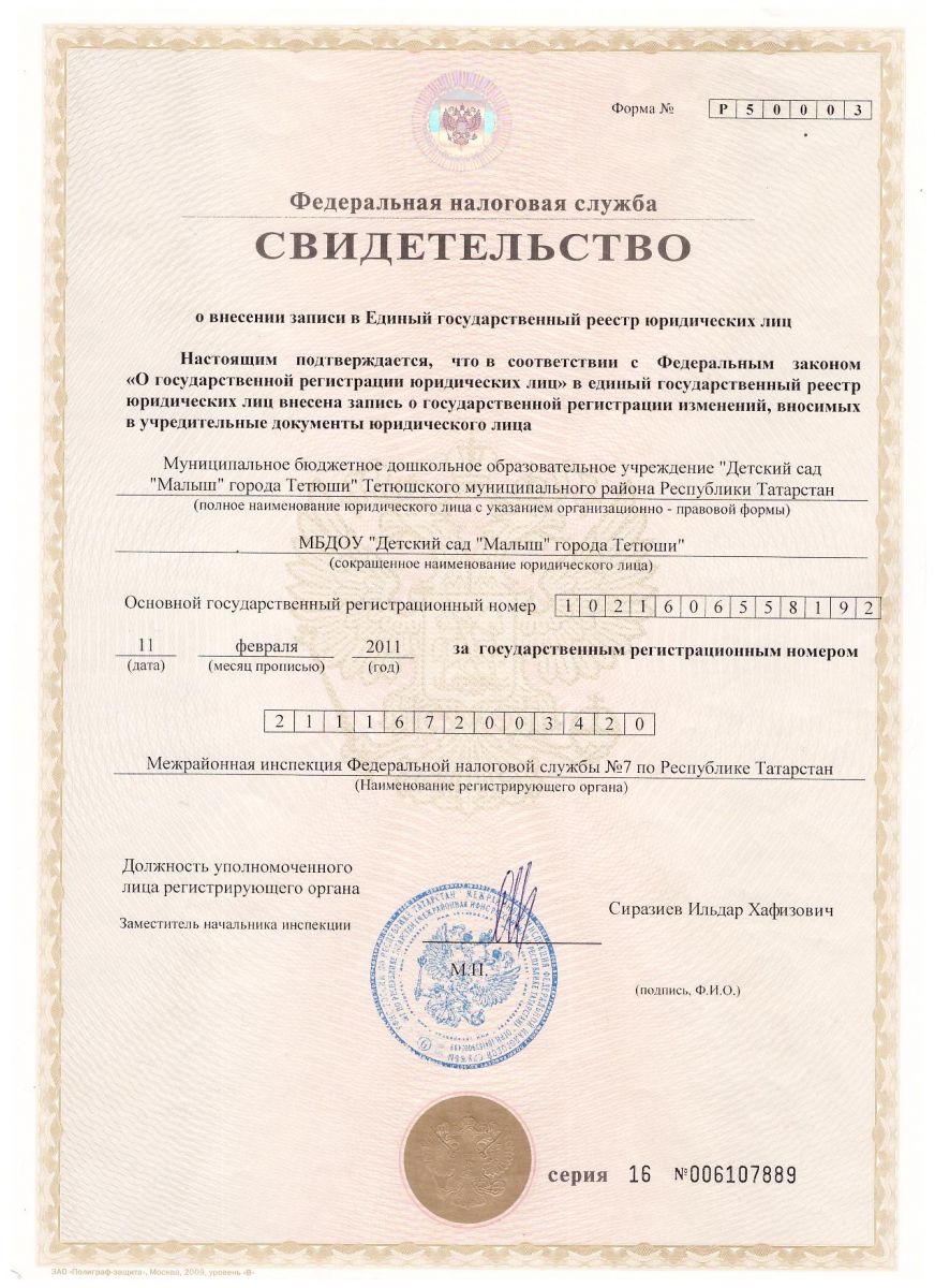 | Короткое название: | МБДОУ «Детский сад «Малыш» города Тетюши» |