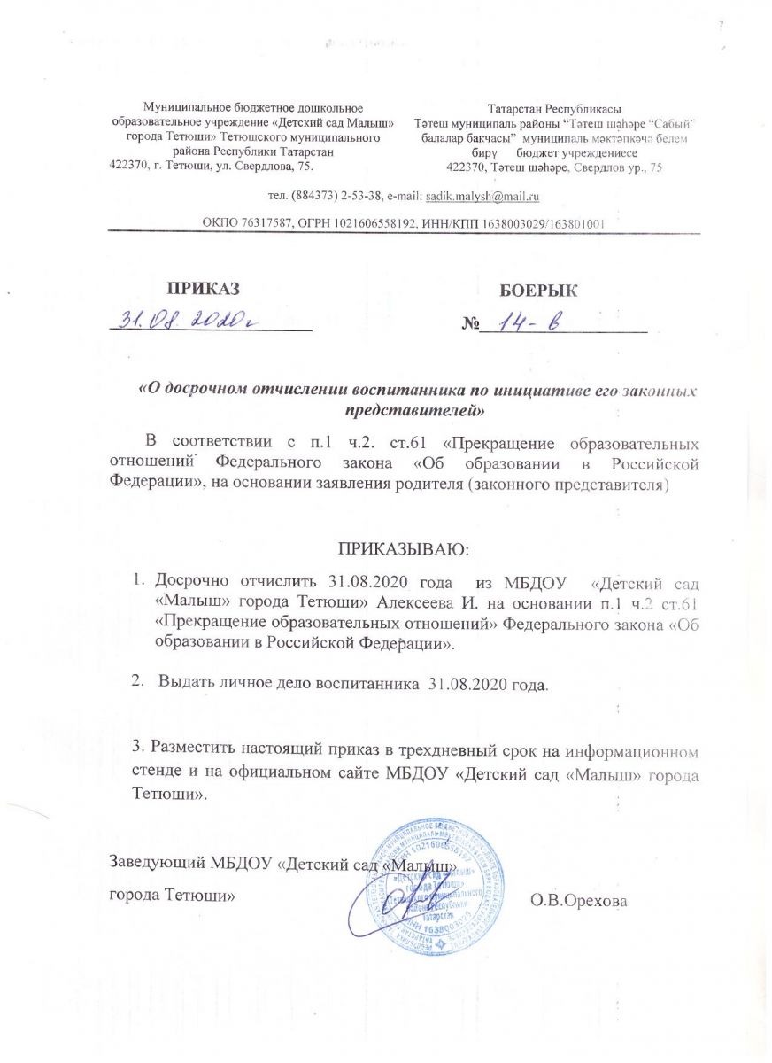 Короткое название: МБДОУ «Детский сад «Малыш» города Тетюши»
