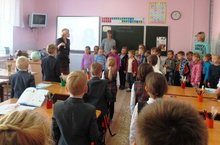 Дошколятам представилась возможность посидеть за партами, рисовать мелом на доске, понравилась «волшебная доска» (интерактивная), на которой можно делать все, что захочется. Наши ребята и выпускники сделали общую зарядку, беседовали с учителями, заходили в столовую, общались с директором.