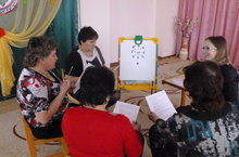 17 апреля в детском саду прошел семинар-практикум с элементами тренинга для педагогов «Скоро в школу». Цель которого - повышение профессиональной компетентности педагогов по вопросам психологических особенностей дошкольников. Педагог-психолог Сафиуллина А. А. в ходе семинара познакомила педагогов с понятием «репрезентативная система», моделями восприятия информации; педагоги попробовали самостоятельно решить психолого-педагогические задачи.