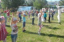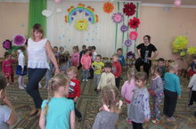 В детском саду с детьми младшего возраста прошел праздник «Здравствуй лето, здравствуй солнце!». Участники праздника с увлечением отгадывали загадки о лете, слушали стихи. Особую радость доставило Солнышко – главный герой этого мероприятия. Хороший эмоциональный настрой подарили детям музыкальные хороводные игры «Танец в кругу», «Потанцуйте наши ножки», «Шире круг». А какой азарт и заряд бодрости получили дети, участвуя в эстафетах «Дорожка препятствий», «Веселое солнышко», «Надень венок». Праздник завершился задорным, веселым танцем с Солнышком и угощениями.