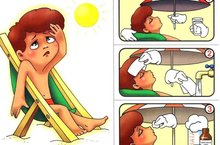 3. Если вы подозреваете у ребенка тепловой удар, вызовите неотложную помощь и приступайте к снижению температуры - положить холодный компресс на голову или пузырь с холодной водой, обливание или обтирание тела прохладной водой, включите вентилятор либо обмахивайте ребенка полотенцем.