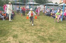 И вот этот день настал. Праздничное мероприятие провели на свежем воздухе. Дети рассказывали стихи, пели песни и с удовольствием участвовали в играх – состязаниях: бой горшков, бег в мешках, перетягивание каната, скачки, бег с ведрами и т.д.Удовольствие и хорошее настроение получили как взрослые, так и дети.