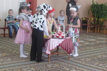 Сегодня воспитанники средней группы поздравили мам и бабушек с первым весенним праздником. Дети исполнили песни, прочли стихи и подарили им билет в сказку. Гости узнавали своих детей в образах героев «Сказки о глупом мышонке». Праздник закончился трогательным танцем с сердечками, которые потом подарили своим мамам.