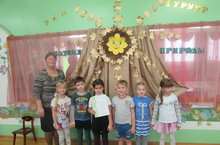 Праздник завершился небольшими подарками: дети подарили взрослым открытки с нарисованными на обратной стороне рисунками, а взрослые подарили детям шарики, с которыми дети с большой радостью играли в зале.