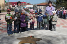 В канун праздника воспитанники средней, старшей, подготовительной, логопедической групп совершили целевую прогулку к площади Монумента Славы. Дети послушали рассказ воспитателей о страшной войне, о воинах, защищавших нашу страну, и возложили цветы к Вечному огню.