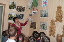 В музее детского сада к 70-летию Победы была обновлена и систематизирована экспозиция, посвященная самой продолжительной, кровопролитной войне в истории человечества - Великой Отечественной войне 1941-1945 гг. В музее представлена коллекция предметов, рассказывающих о войне: картины, фотографии, макет самолета-кукурузника, плакаты, макет сюжета боевых действий. Особенность экспозиции - редкие фотографии фронтовиков, солдатский треугольник, фляжка. Педагоги детского сада считают, что музей несет огромный потенциал в воспитании дошкольников, помогает формировать любовь к Родине, бережно относиться ко всему, что досталось от предшествующих поколений.