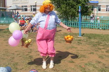20 июня было проведено развлечение "Путешествие в страну здоровячков и хлюпиков". Веселая зарядка под музыку помогла взбодрить Хлюпика. Он вместе с детьми младшего и старшего возраста играл в игры, учавствовал в различных соревнованиях. Хлюпик дал советы о полезной и вредной еде. Выслушал правила здорового образа жизни. Мероприятие завершилось забавным танцем, танцевали все!